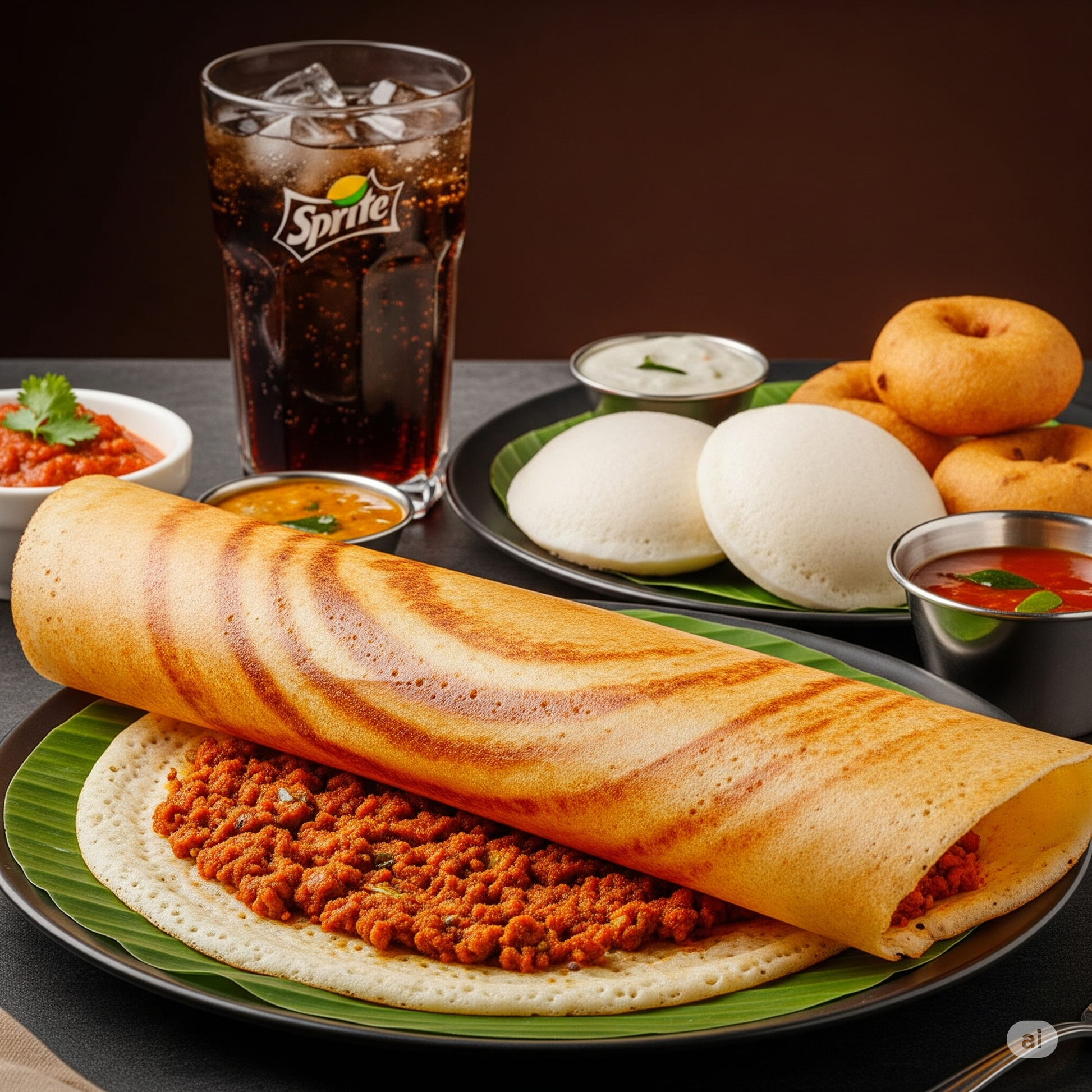 Podi Lamb Dosa - Idly + Vada + Soft Drink